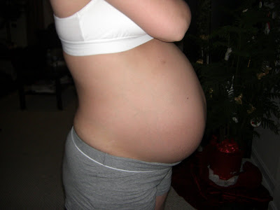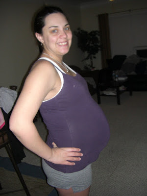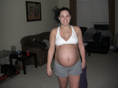 Other than that not much going on besides me retaining so much water. I am loosing my ankles really fast! It is so sad! only a few pair of my shoes fit comfortably! And it moves up my legs as the day progresses. But it goes away when i have a chance to chill out and put them up! She is also putting her feet right in my ribs. I know she is just trying to make some stretching room for her because she is quickly loosing room and fast! so she is more than welcome to stretch out where ever needed! Sometimes i wish i could get a warning though because i am sure that my co workers think i have a twitch because i randomly jump or jerk around when she does because it throws me off guard and sometimes isn't the most pleasant feeling. But that is really not anything to complain about!