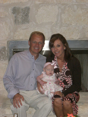 This was Ava's First Easter! We had a beautiful dress that was given to her by Amanda Curry's mom. It is so cute!! I added the big bow! Des was not too thrilled about the bow but i thought it was too cute!!! Everyone at church loved it!!! We went to church on Saturday night. it was so good! Max and my Dad did an awesome job! We took a couple pictures before church and my parents took some after. here are some of them! My parents with Ava on the backyard patio! Daddy and his baby girl posing for momma's many pictures! what good sports!!!