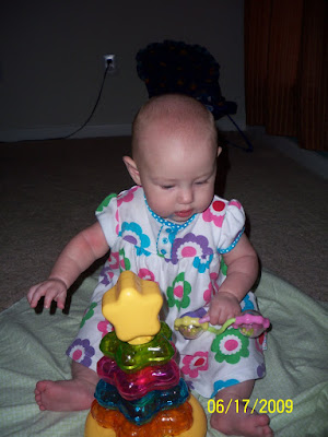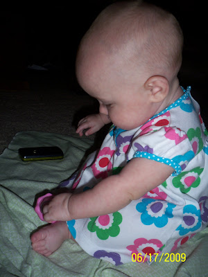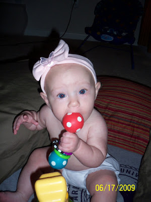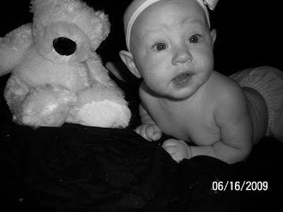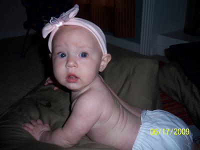 this is ava's latest thing she has started doing! she is getting up on both hands and knees and rocking back and forth! crazy at five months she is doing that. i can't believe that she is already started taking steps to crawling!!! she is such a smart baby girl! she is getting to the point were she just scoots to her toy! it is amazing to watch her learn these new things! here are some pictures of her on her hands and knees! tomorrow i will do my best to take a video of her rocking back and forth!