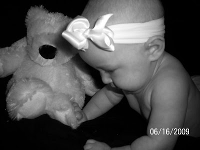 It has been a few days sense i updated! but we have had some new things happening! Exciting! well one little thing is that she has gotten to big for her bath chair and she can wiggle out of it. We bought a duck blowup tub. it is so cute and it makes quacking sounds when you pinch its beak. She loves it. She also got some disco ducks that light up when you put them in water and touch them. she loves to play with them! i have a few pictures of her sitting in it. she just lounges back and chills out! it is so cute! for those of you who don't know her bathroom is duck theme so this works out perfect! i figured ducks were good for later on if we have another child and it is a boy. but i also love love love the little ducks. i don't know i just relate them to bath time and think its fun!! anyway... here are the pictures!!!