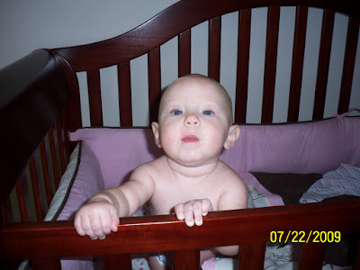 I came in to get her one day from a nap or something and this is what i found her doing!! now she does it everytime!! she looked at me like hello i have been waiting for you to come get me!!!