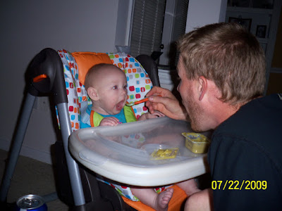 This is a picture of Daddy's first time feeding his little girl! He actually had a good time! He seemed to be having fun! she is so funny when she eats!