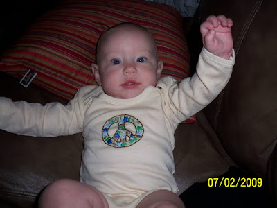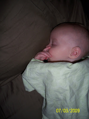 well she ended waking up around seven this morning! i picked her up and kissed her like i always do but i have never kissed her head and felt her so HOT! so i immediatly took her temp again and sure enough it was 101.1. so i text one of our other friends because she had told me that she knew of a dr that was open seven days a week. and the dr i went to they were off for the holiday weekend. so i called them and they let me set up an appointment. we went in and she was weighed and she is now 17.8 lbs! that is a whole pound in a month! crazy growing girl! well that was possitive she is still eating great and not losing weight! then the dr came in and looked in her ears because i initailly thought ear infection becuase she had been grabbing her ears and behind her head lately! but i was wrong thank GOD! he listened to her chest and said sounds good. looked at her mouth and said she has a little resperatory issue. nothing a stronger over the counter med can't fix. so we went down the the pharmacy which is in the same building(very nice) and got the meds and walked out. she was so fussy on the way out. she layed her head on my shoulder and fell asleep in just a few seconds. she never does that so i know how bad she feels. we went home and she would not let put her down so we snuggled on the bed all day with daddy who also was not feeling great sense he cut his finger open at work three days ago! so we all just relaxed! we are playing right now and she seems to be feeling better her fever around 5:40 was 99 so we are back down. it has been jumping all around the place but i feel it is down. we are still giving a decongestent med and tylonal for the rest of the day every four hours!!! she has been my little snuggle bug today and i love that because normally she is all over the place and loves on me a little but i don't like that its becuase she is sick!