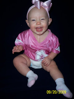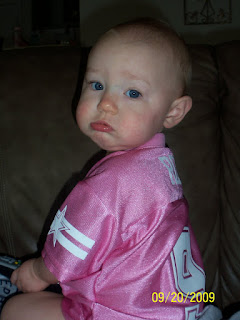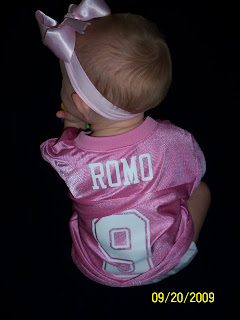 Dez bought ava a pink cowboy jersey for today and the rest of the year so i thought it would be so cute to take pictures of her first cowboy home game!!! She hung out with des for some of the day before the game watching other football games that were on. Dez had to work tonight so we are watching the end of it right now even though i already know the sad outcome :( But like i said Ava looked cute!!! there are too many cute ones i can't decide which ones to post so i just posted them all!!! I love them! one of them with her back turned i am getting framed... the one with the black background. I have to get it framed it is so cute!!!