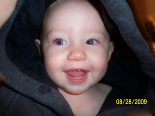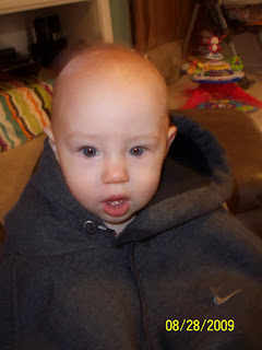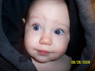 Ava has a new way that she likes to snuggle. One night i was at my parents house and we were sitting on the patio in the back yard. It started to rain and so i put her in a sweatshirt to keep her from getting wet or cold. The rain was not on us but sometimes would blow in the sides of the covered patio and it was still warm outside.