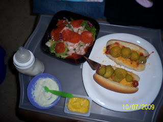 Yesterday i was not really wanting to eat lunch. I had a cup of coffee and was just not hungry as i usually get when i drink coffee. But i decided i should eat something because i get really bad headaches when i skip lunch. And these days it is so hard to make a good meal to eat without going out. i don't have time usually because ava keeps me going just about all day! which i love by the way!! So i went to the kitchen when it was her time to eat and decided we would have lunch together. We had hotdogs from the National Night Out we hosted at our community so i just fixed two of those and a salad... trying not to feel bad about the hotdogs with a salad. Not sure why that makes me think it is better for me. i mean it is me just eating more. HA HA! anyway... it turned out really good actually ava and i had a lovely lunch together! Ava had cereal and corn!