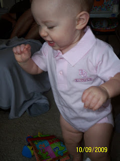 Ava has gotten to where she likes to climb on things to get as far up and she can. she stands on books blocks and pretty much anything she can find even....