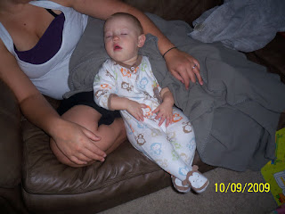 today she was so sleepy but was fighting it and i just knew that she needed to get a nap. so i put her in my lap to see if she would just at least relax! well this is about ten minutes after she was in my lap!!!