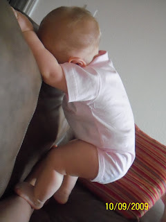 Ava has a new way that she likes to sleep!Too cute! she looks like she was in the process of trying to stand up and fell asleep in the middle of it! Yesterday she was not wanting to go down for a nap which is a normal thing here these days. So i decided i would still try to get some things done around the house and let her play it out in her playpen in the living room. Des was home watching some tv after a full day of mowing yards and he took a nap on his chair. She played for twenty minutes just squealing and laughing! Then all of the sudden i did not hear any noise. I walked over very quiet and she was passed out in her playpen in the same position that she seems to fall asleep in lately! mid task or something!!!
