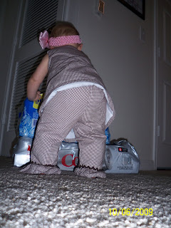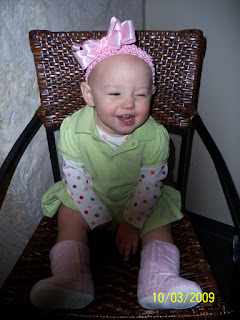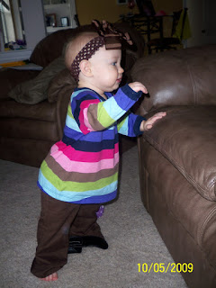 Ava is getting so big and she is growing out of her old clothes and into many new ones... It is a bitter sweet time for me as a mom. This means my little girl is growing up and getting bigger and that is both happy and sad! But a fun thing is that she is getting into a few things that i really love and have wanted her to wear. It is twelve month stuff. Yes she is fitting into twelve month clothing mostly and she is eight months old. she will be nine months old on the 22nd of October. Last week i spent a whole day cleaning out her closet of things that did not fit anymore. i felt like i was taking EVERYTHING away. Well my mom helped us get a few more winter things to refill her closet. And i got to pull out other things that we have had since she was born and she was way too small to put her in. I had to take a few pictures of some of her outfits of course!